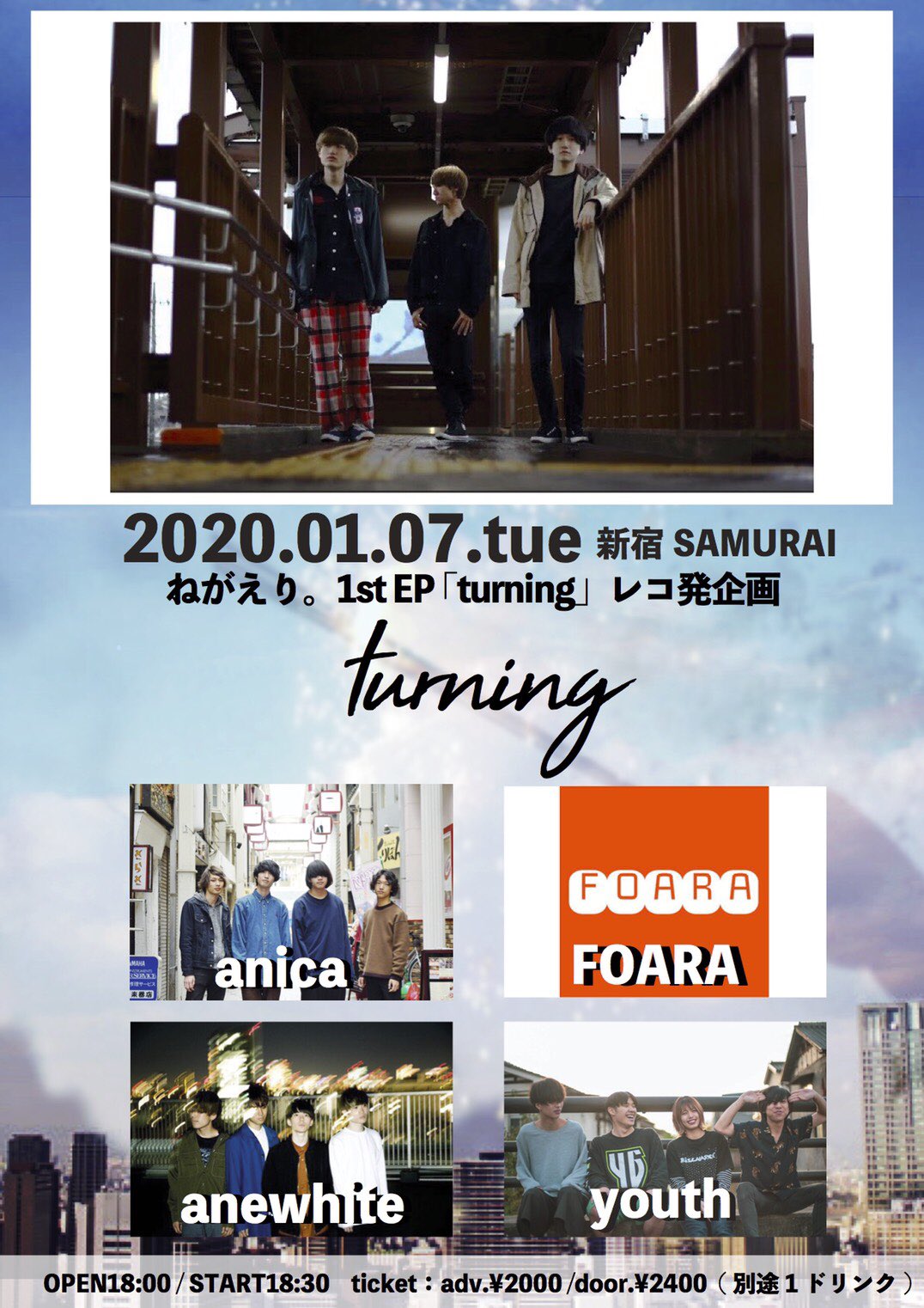 平均年齢19歳歌モノギターロックバンド。2018年1月1日より活動を始める。「一度聴くと耳に残る」キャッチーなサウンドとセンチメンタルな歌詞を武器に活動中。